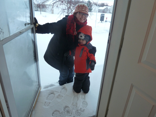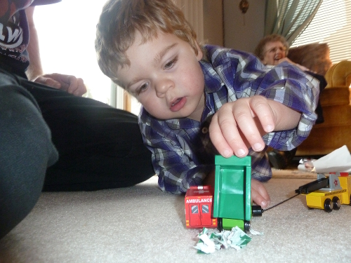 Mommy and I stayed at Great-grandma and Great-grandpa's Thursday night through Saturday afternoon. We played cards and trains and watched Thomas and Mighty Machines - we even ventured out in the snow for a little while.
