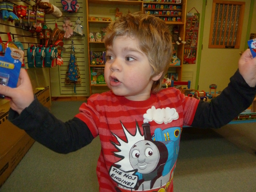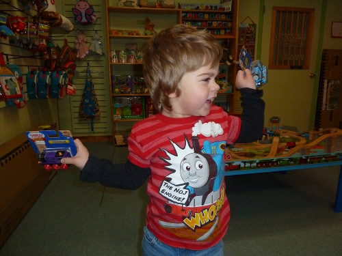 I was feeling better on Saturday, so Mommy and Daddy let me go buy some new trains with my birthday money. I chose Edward and Charlie and Rosie and Millie.