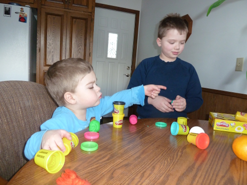 And Max came over with Great-grandma Darlene, Bradley, and David. Daddy was a lazy cameraman and forgot to take pictures - we only have one of me playing with Max.