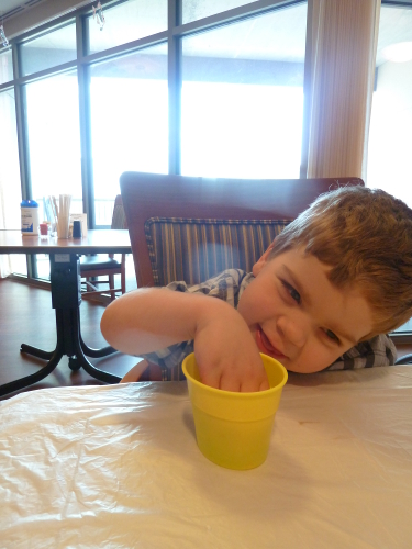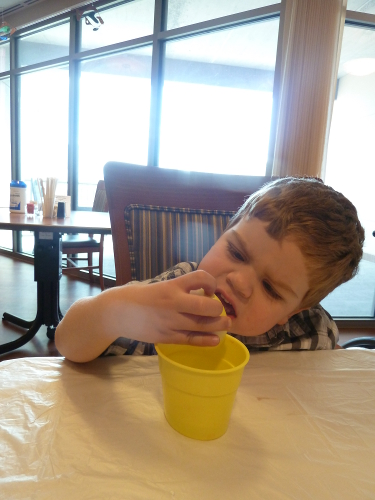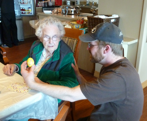 After the park we stopped to see Great-grandma Dorothy in her tower and I got to make some Easter eggs - which turned my hands all yellow and orange.