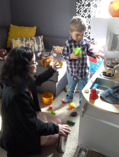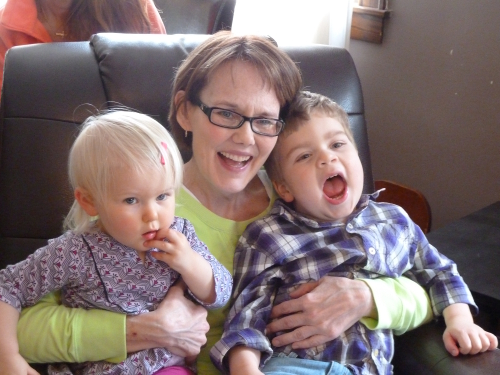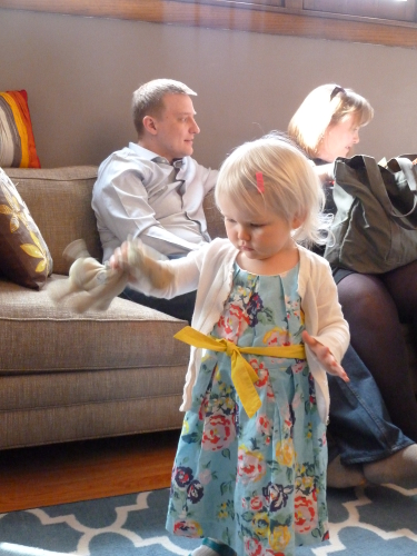 We were the first to get to Josh and Kara's, but then Nancy and Michael and Molly arrived, then GG with Great-grandpa Les and Great-grandpa Muriel. I played with Freya's toys - she has a kitchen like mine.