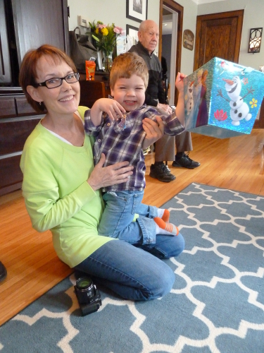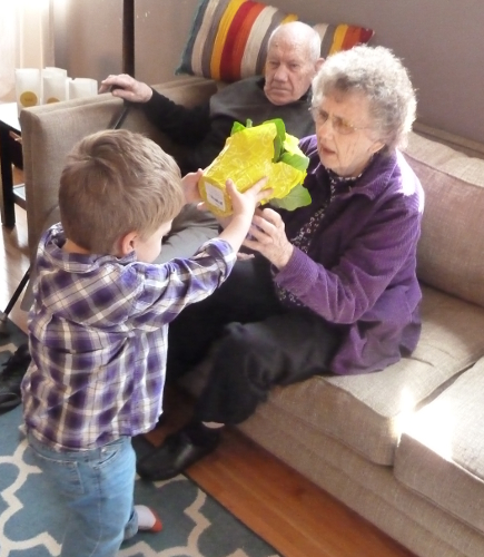 After the party, GG rode home with me and Daddy and we visited with Grandpa Kevin, Abby, and Max before going the rest of the way to Grandpa Al's house. Mommy went to have some fun with Great-grandpa Les and Great-grandma Muriel and Auntie Kara before joining us.