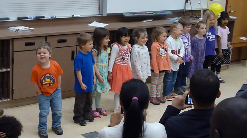 Saturday morning I had some visitors: Great-grandpa Les, Great-grandma Muriel, GG, Grandpa Kevin, Grandpa Al, and Grandma Wynne. And we all went to Family Fun Day where I sang some songs with my preschool friends.