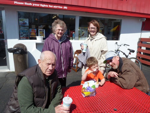 With Great-grandpa Les, Great-grandma Muriel, GG, and Grandpa Kevin.