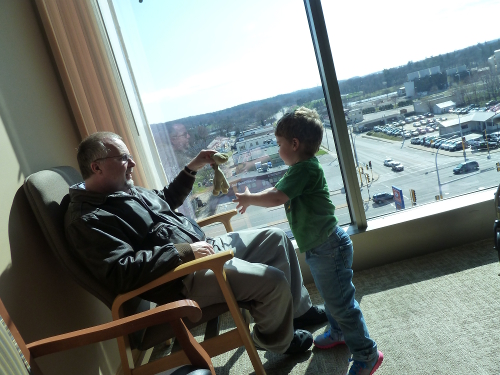 Riding in the tower - maybe for the last time. Daddy says I am getting too fast to ride inside.