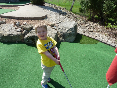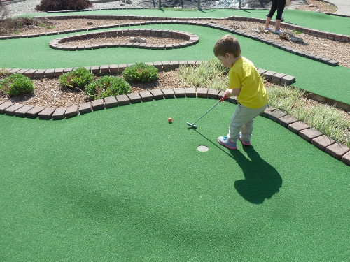 Then we went to visit the llamas at the toy store, and we played a game of golf.
