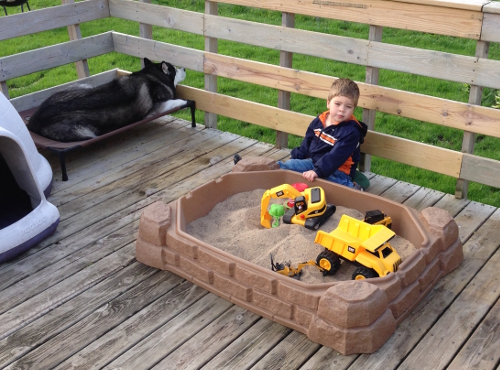 I got a sandbox at Grandpa Al and Grandma Wynne's house.