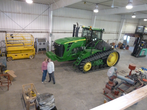 Grandma and Jenn by another tractor in the shop.