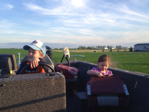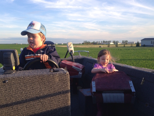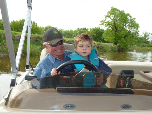 And then we went on a boat ride! We took Jenn and Bob's pontoon boat on the river. The captain even let me steer a little bit!