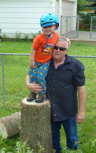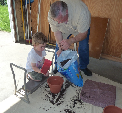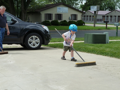 Mommy and Daddy went on a trip for a few days, so I stayed with Grandpa Al and Grandma Wynne. Grandpa put me to work.