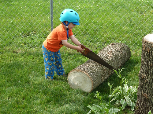 Sawing logs.