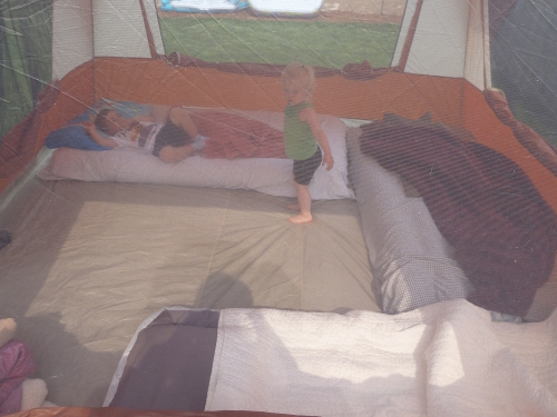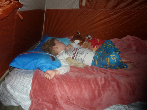 Asleep in the tent.