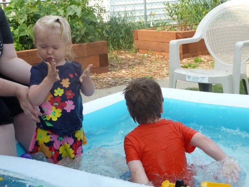 After our outing, we played at the house in the spaceship and in the pool.