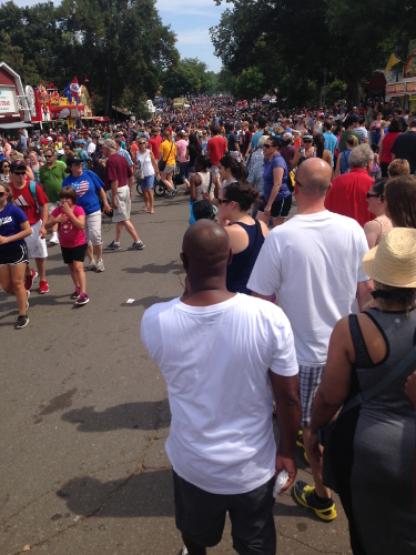 So here are the before and after pictures - on the top from 7:00 AM, on the bottom from 2:00 PM when we left. There were 211,216 people with us at the fair on Saturday.