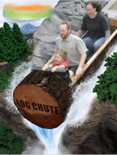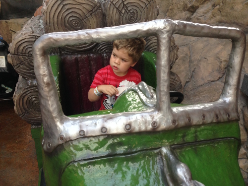 Sunday morning we went to the amusement park at the mall. It was very crowded so I didn't get to go on a lot of rides, but I went on the trucks with Freya, the big roller coaster with Mommy, the bumper cars by myself, and the Log Chute with Mommy and Daddy - we got a little wet. After all that we had some lunch in the new food court and ate some frozen yogurt in our secret spot.