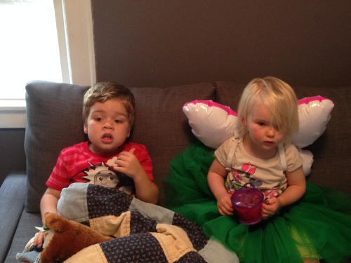 After we'd had enough of the crowds at the mall, we went to Freya's house and watched some Daniel Tiger. And then we had pizza for supper!
