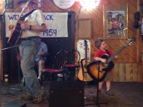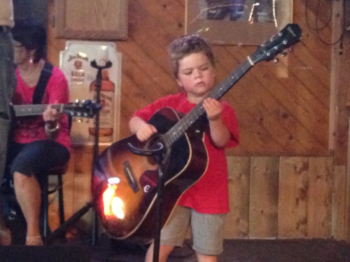 On Monday night I went to play with Jim at the bar. I did my two songs (Folsom Prison and You Are My Sunshine) and one song some of Jim's friends wanted to do. It was fun, but then we had to go get Mommy from school so my concert was over.
