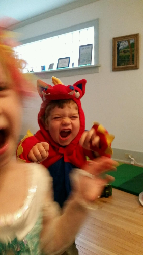 Here is a bonus picture we missed from a few weeks ago: chasing Maya in a dragon costume.