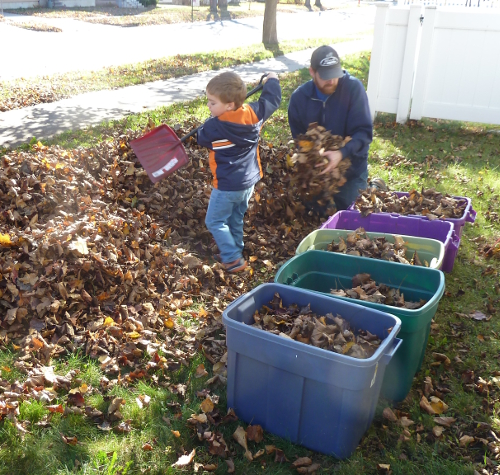 Sunday we stayed home and raked leaves and played with LEGO. We did go out for a little bit, to get rid of the leaves, and that was fun: we went to a farm and I fed the goats the little bit of kale that was left in our garden. But no pictures: Daddy was too busy trying to keep the goats off of me.