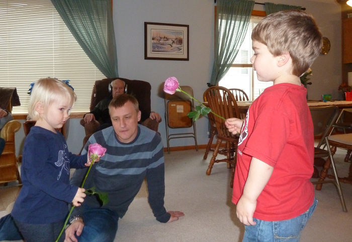 Playing with the flowers we got GG for her birthday.