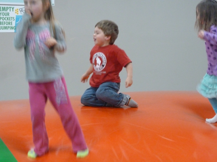 Jumping on the big ballon/pillow-thingy.