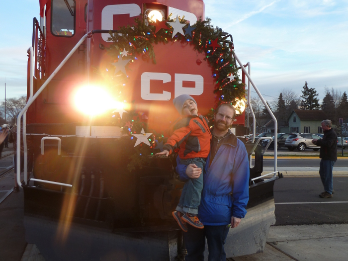 This week the Holiday Train came to our town! We went to see it after I was done with school. We even got to climb up on the engine! And there was a band playing music - but it was a little loud. We left at the right time and avoided the traffic jam - and we got to see the Holiday Train when it went past our house right after we got home!