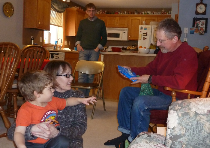 Grandpa Kevin is teasing me with the White Elephant gift GG chose.