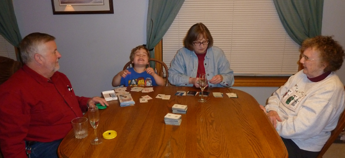 Mommy made it over on Wednesday and we went to Great-grandpa Les and Great-grandma Muriel's house for a few days. We went out for supper, played cards, watched cartoons, played with my toys, read books, and went outside a little bit. I also got to stay up late on New Year's Eve - but I didn't make it to midnight. GG came over New Year's Day, but we didn't get any pictures because we were having too much fun.