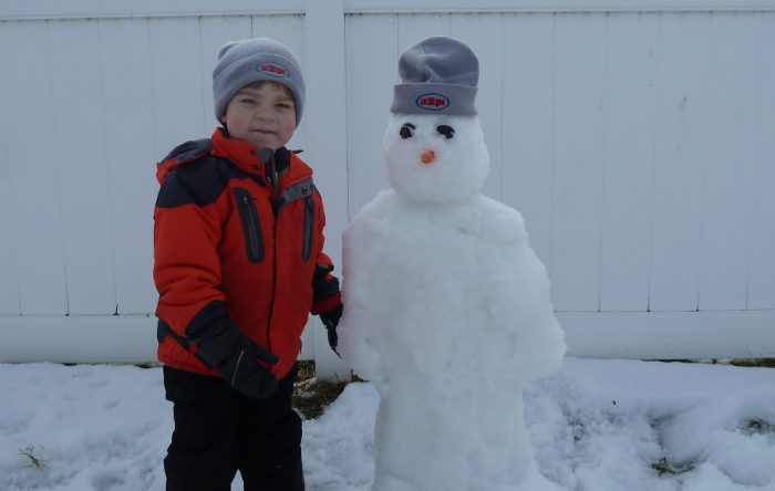 We didn't spend every minute inside. We did go out for a little bit since the weather was nice. We worked on my snow fort and Daddy made a snow Henry!