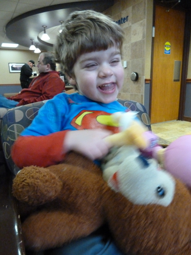 This week I had an EEG and I had to stay up all night! Mommy and Daddy barely made it. I was fine except for the ride in the car to the town where the appointment was. Once we were at the restaurant where we had breakfast I perked up.