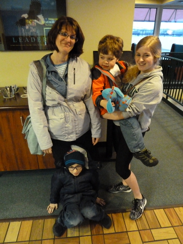 After the registration we met Angie, Sawyer, and Kyra at Godfather's for supper. And then my friend Aiden and his family came in and sat next to us - so that was a lot of fun.