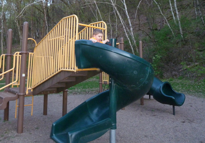 Me on the slide outside the party.