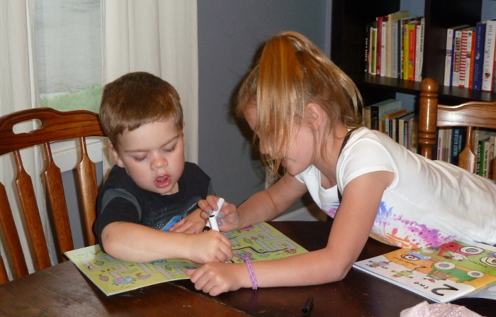 Doing a maze with Emmelia.