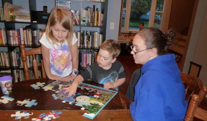 Doing a puzzle with Emmelia and Mommy.
