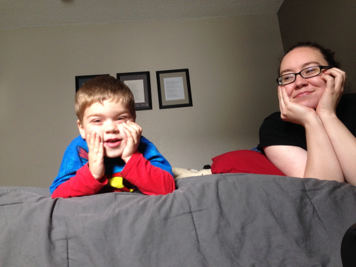 Hanging out with Mommy on the bed.