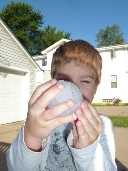 One of the ice balls we made to play with. It didn't last long in the morning sun.