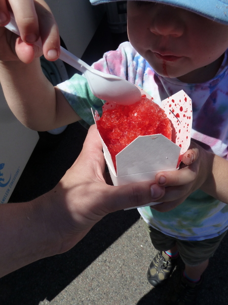 This week I had some fun. On Monday I went to the food shelf with Mommy and helped pack boxes. I liked being a good helper. On Tuesday, I stayed home with Daddy while Mommy went to her internship. We worked on the garden, played with ice, and played around the house.