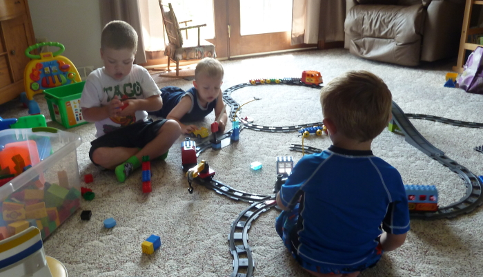 I got Uncle Neil to come down and play with trains, and we also played with a really good paper airplane he made.