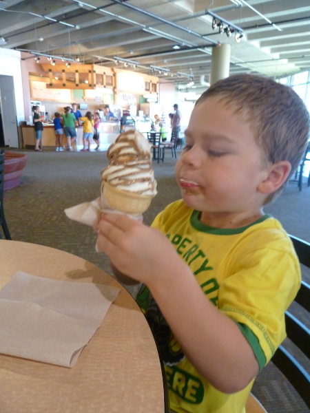When we got back from composting, we ate the delicious lunch Mommy made with pesto made from basil we grew in our garden. Then Mommy made some ice cream we will get to try once it freezes, and Daddy and I built my new LEGO set. We went to the toy store to look for a different, much smaller toy, but when I saw this I was too excited to think about anything else. I was saving my allowance to buy it but I didn't have enough yet, so Mommy and Daddy loaned me the money. I'll have to do a lot of work to earn it all. And we were lucky, this set isn't even supposed to be out yet - we got it early!