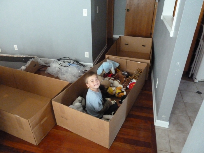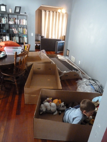 Mommy went to work Tuesday morning, so Daddy and I put her couch together.