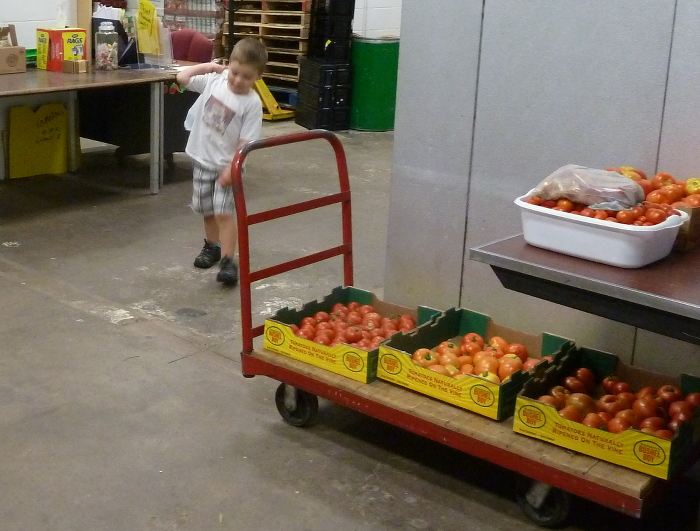 On Thursday Pelly and Tony were at the house when I woke up! Mommy and I went to work at the food shelf, then we went out for pizza with Daddy, Pelly, and Tony at lunchtime.