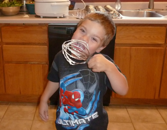 On Friday, Mommy made whipped cream to put on our strawberries, raspberries, and blackberries we had for lunch.