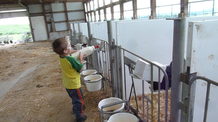 And on Sunday, I got to ride with Grandpa Al in the truck again! We went to four farms, and at the first stop I was in time to help feed the baby calves.