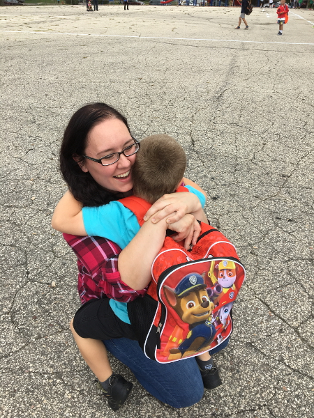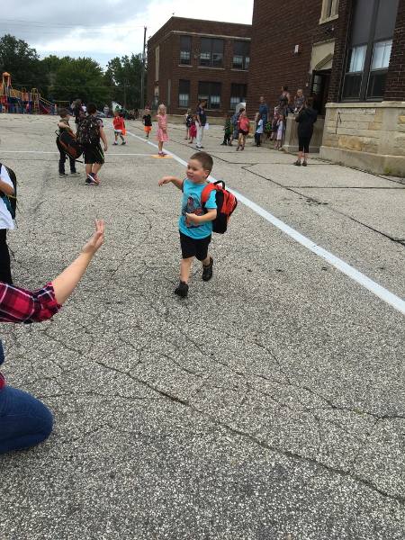 Wednesday was my real first day of kindergarten, because Mommy and Daddy left me there. I had a hard time saying goodbye. I didn't even get to go out on the playground because it was raining.