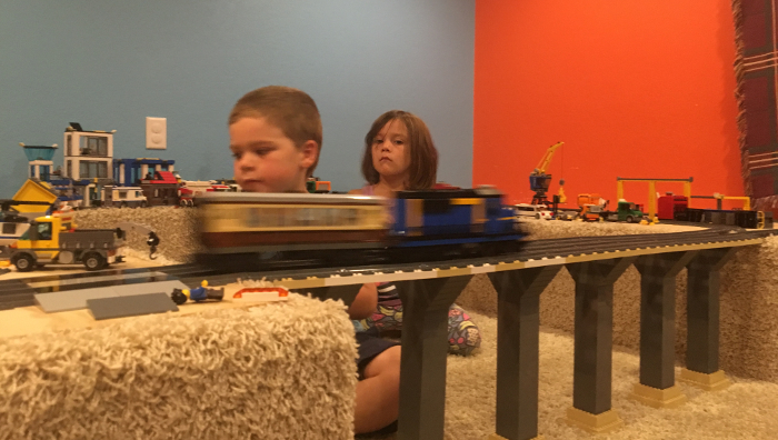 Playing trains with Lilei while Mommy and Ambrosia talk upstairs.
