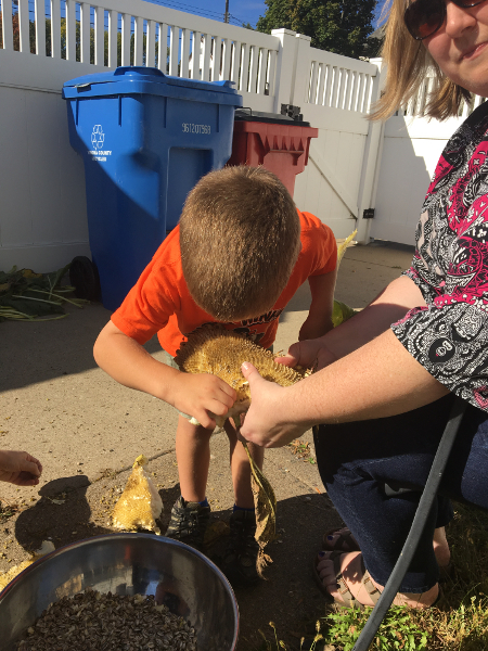 Kara came down Saturday, and she helped us harvest our sunflower seeds! After that we took some more of the garden out to the compost farm.