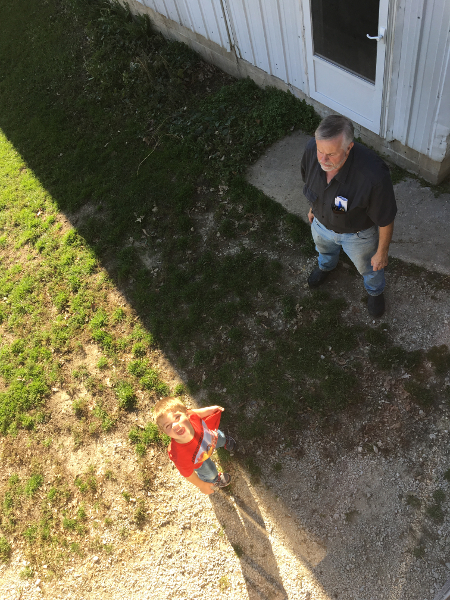 Me and Grandpa Al. Daddy climbed on top of the milk tank to get this picture.