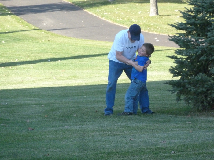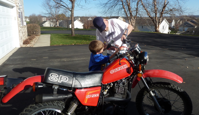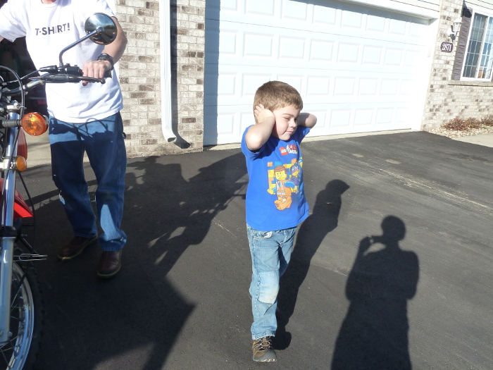 GG and Grandpa Kevin picked me up in the morning and we went for breakfast and spent the day doing fun stuff. We played with robots, we fixed Grandpa Kevin's motorcycle, we watched videos of the volcano Grandpa and GG used to live by, and we chased each other around in the grass.