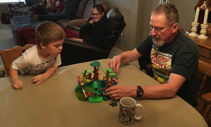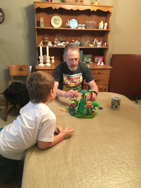 Me and Daddy playing Mt. St. Helens Rangers with Grandpa Kevin on the two-way radios.