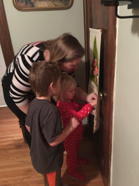 Brace yourselves - we had a big day. We started out at the house with Freya's Advent calendar that Auntie Kara made.